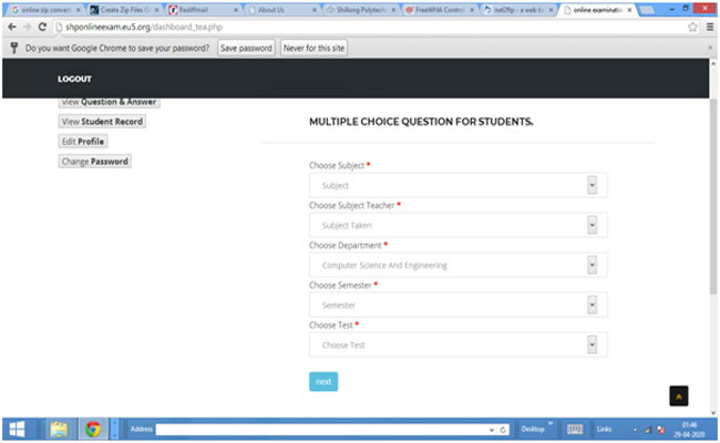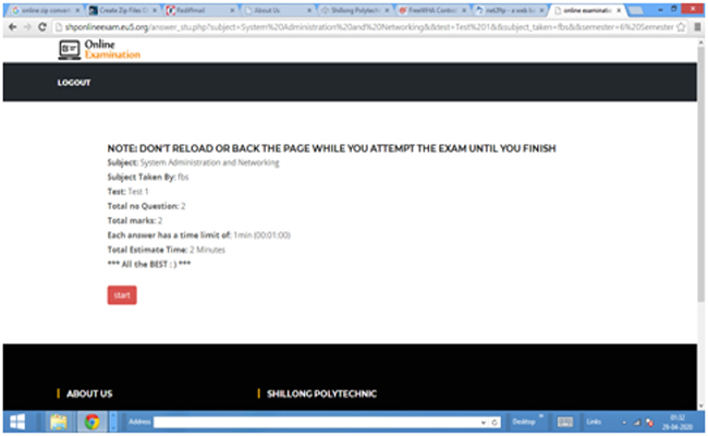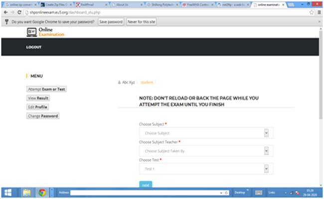 2. Choose the option as given in the drop down box and click next to appear for exam and the screen below will appear.